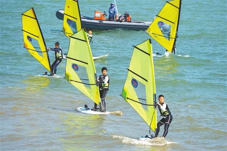 10月5日,在海口西海岸,青少年在体验帆板项目。海南日报全媒体记者 袁琛 摄