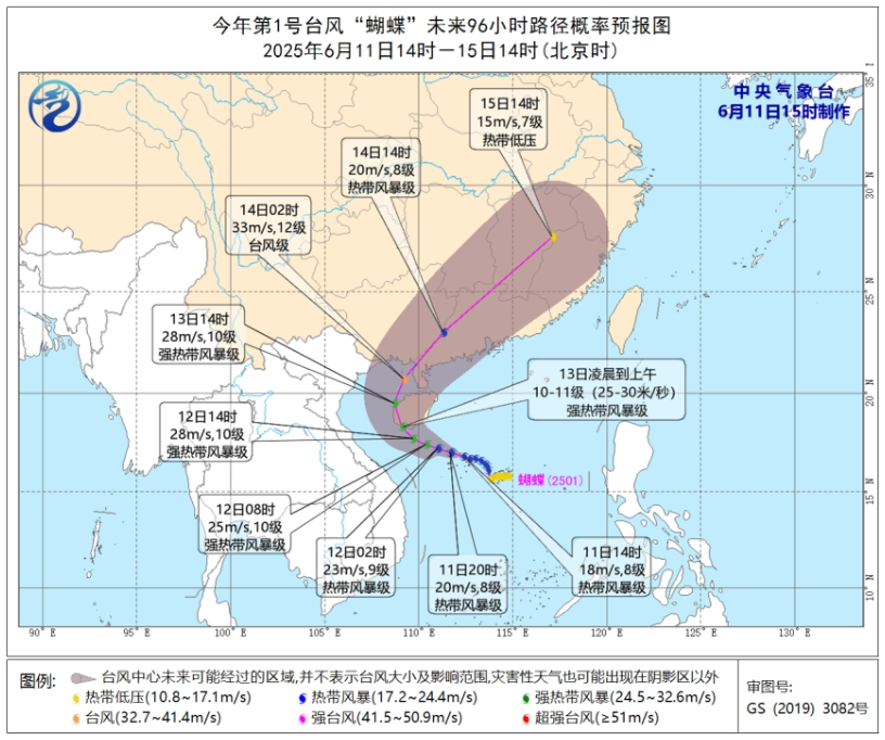 预计,“蝴蝶”将以每小时10-15公里的速度向西偏北方向移动,强度逐渐加强,向海南岛东南部沿海靠近,并可能于13日在海南岛东南部沿海地区登陆(强热带风暴级到台风级,10-12级,25-33米/秒)。