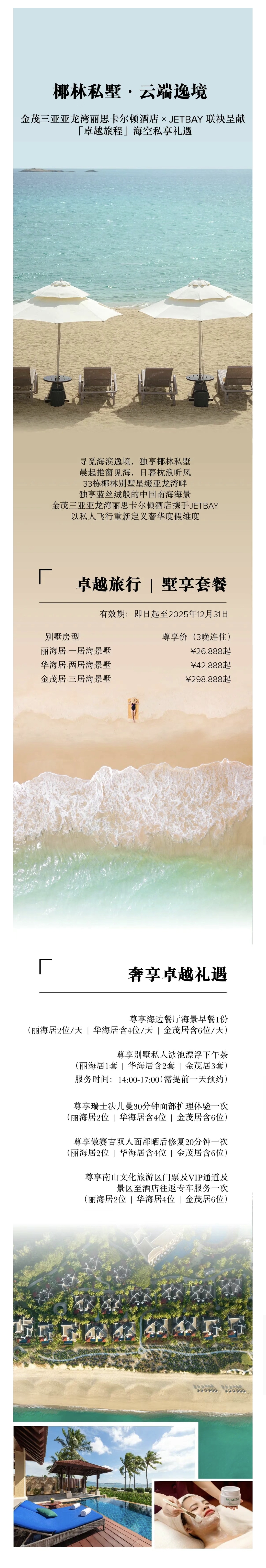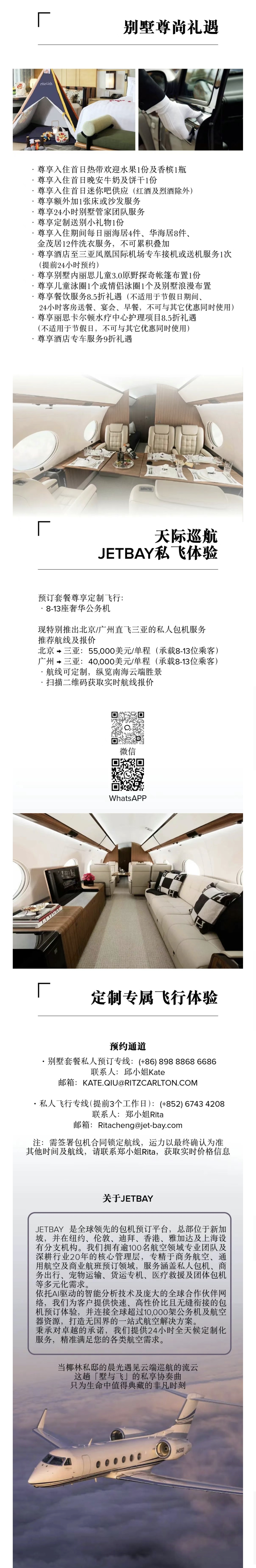 亚龙湾丽思卡尔顿海空私享礼遇 | 椰林私墅·云端逸境