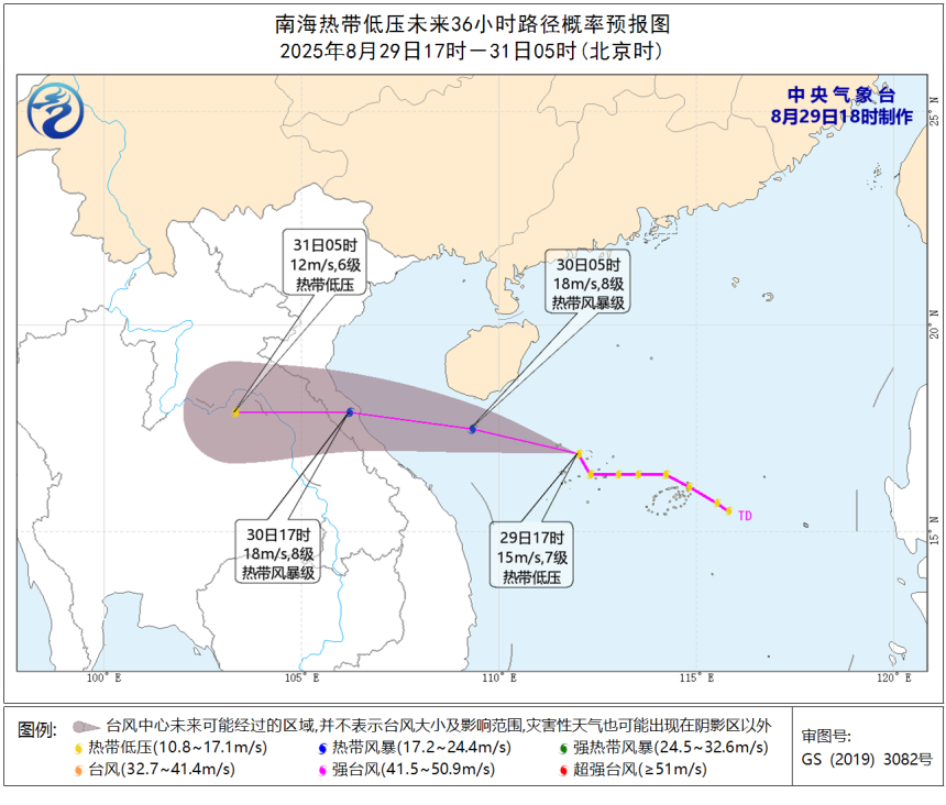 受其影响:三亚市东部和南部海面,29日夜间到30日上午,风力7-8级,阵风9-10级;30日下午到夜间,风力5-6级、阵风7级,雷雨时阵风8-9级;31日白天到9月1日白天,风力5级、阵风6级,雷雨时阵风7-8级。