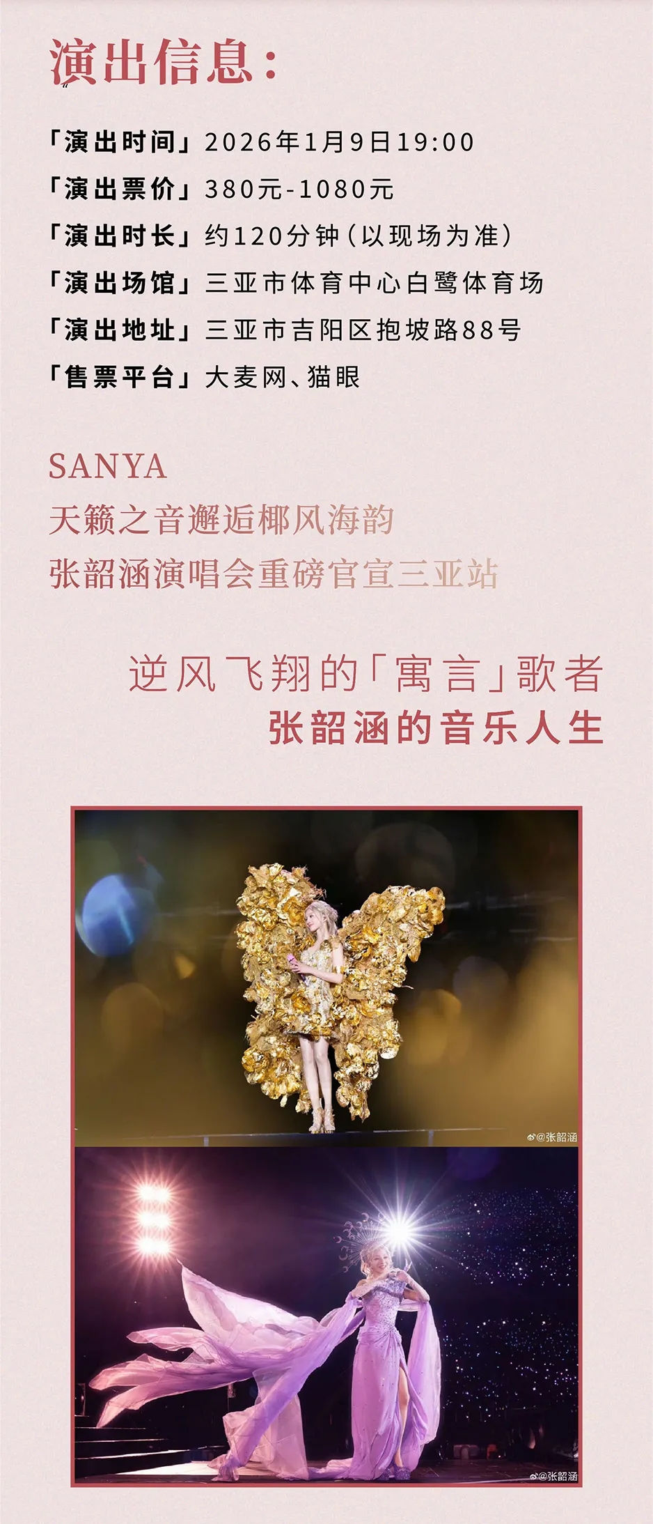 张韶涵“觅光”世界巡回演唱会三亚站官宣!2026年1月唱响天 ...