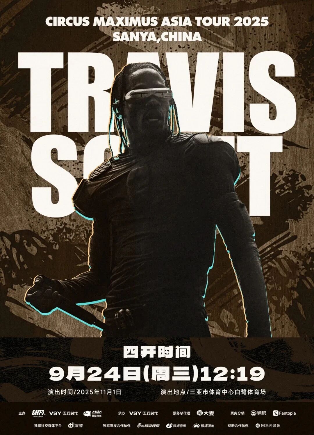 Travis Scott 2025「Circus Maximus」巡演三亚站演唱会四开! 9月24日12:19准时开抢