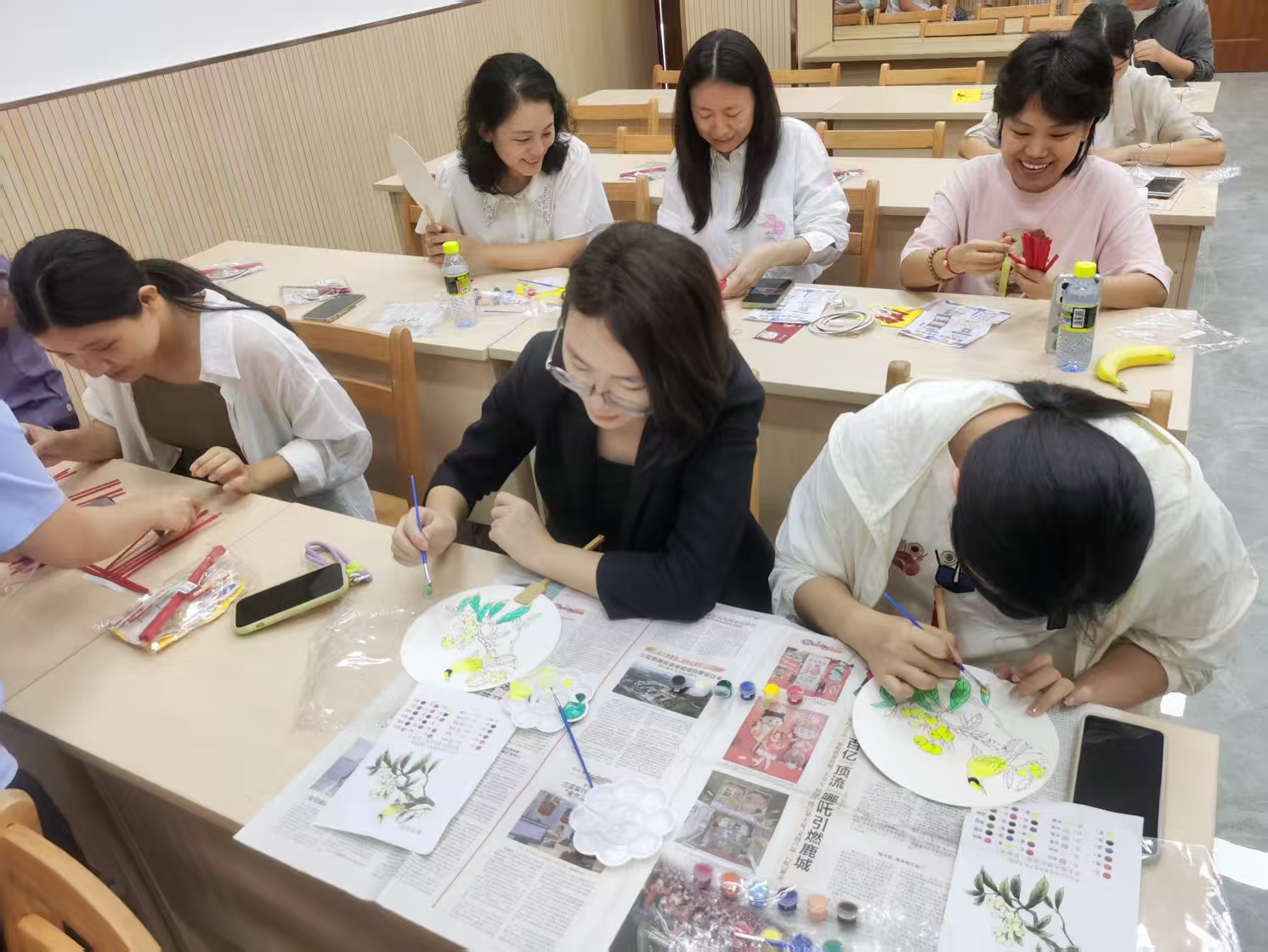 非遗体验环节更是人气爆棚。在“红色竹编风铃”区,大家拿起竹材,专注地编织着融入五角星、党徽元素的风铃,将红色信仰与美好祝福编织其中。“手绘中秋团扇”区里,空白团扇在大家的笔下变成了一幅幅精美的作品,每一把团扇都承载着对中秋的美好想象,也展现了大家的创造力与审美力。