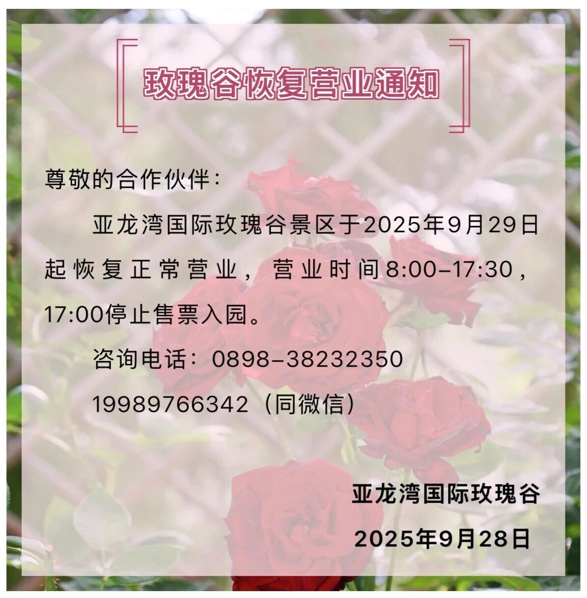 亚龙湾国际玫瑰谷景区今起恢复营业
