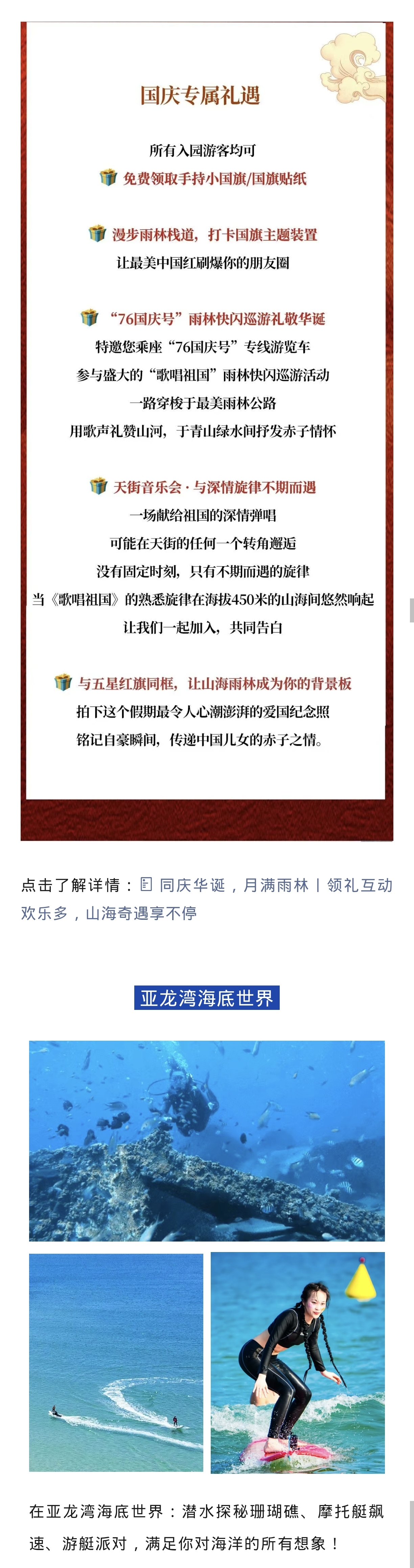 双节狂欢全攻略 | 亚龙湾国庆中秋限定玩法,承包你的假期仪式感!