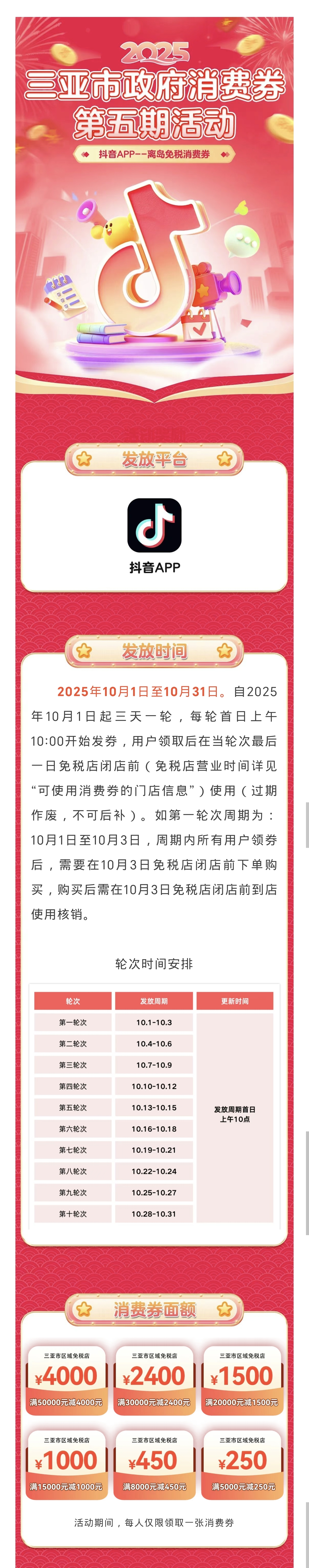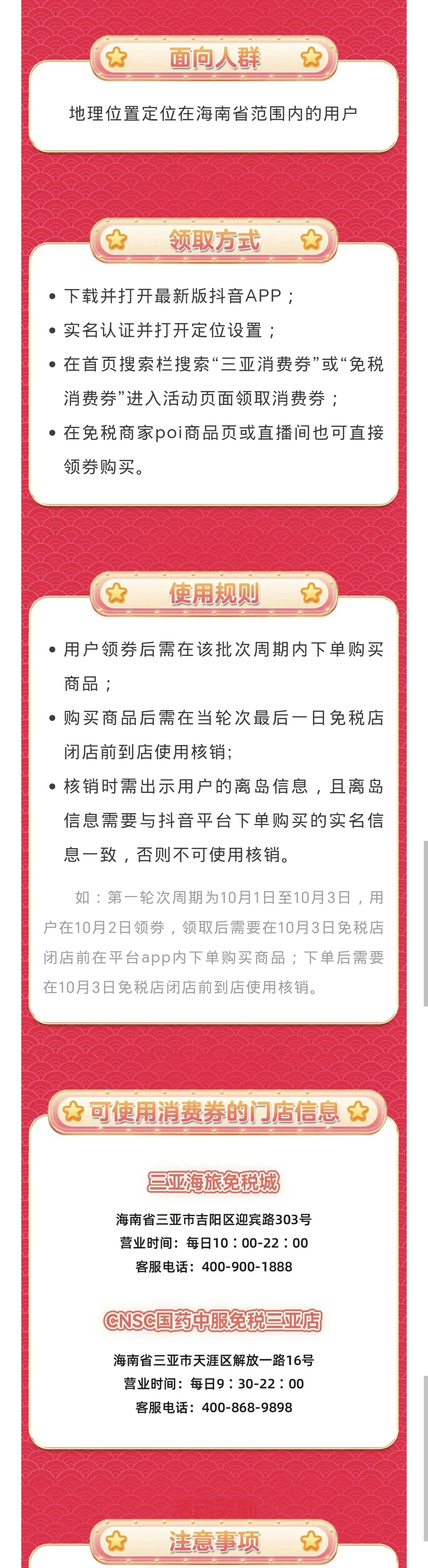 2.使用消费券需离岛航班/船票/火车票信息,用券时请注意了解门店营业时间(闭店时间)。