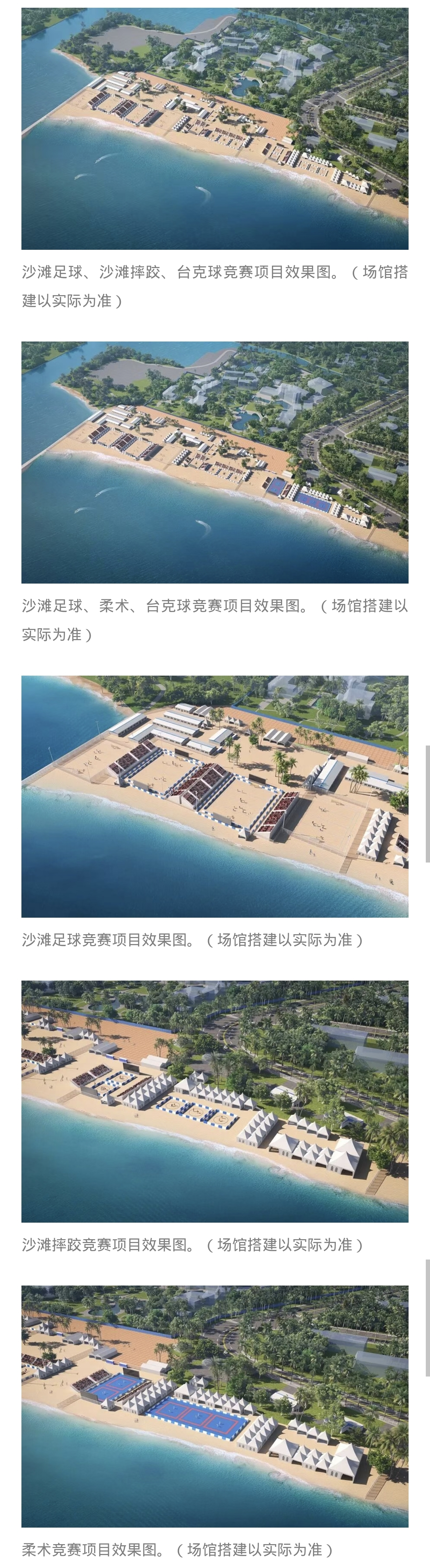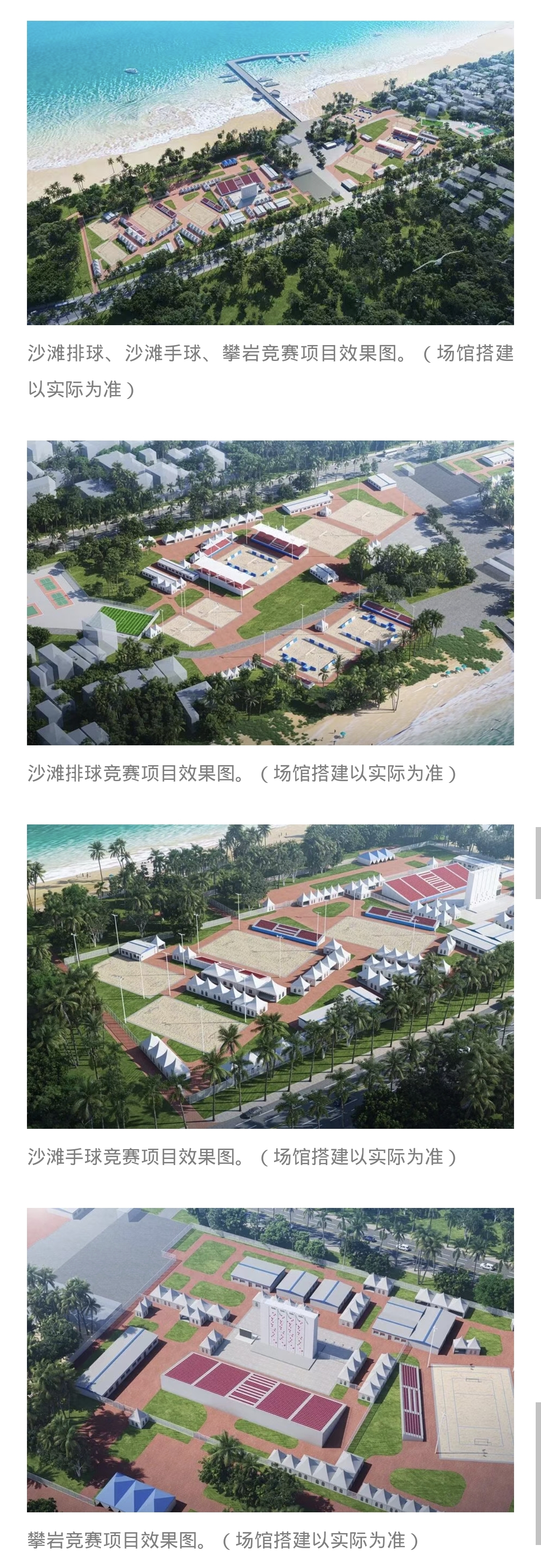 沙滩排球、沙滩手球、攀岩三个竞赛项目选址于天涯海角游览区西侧;