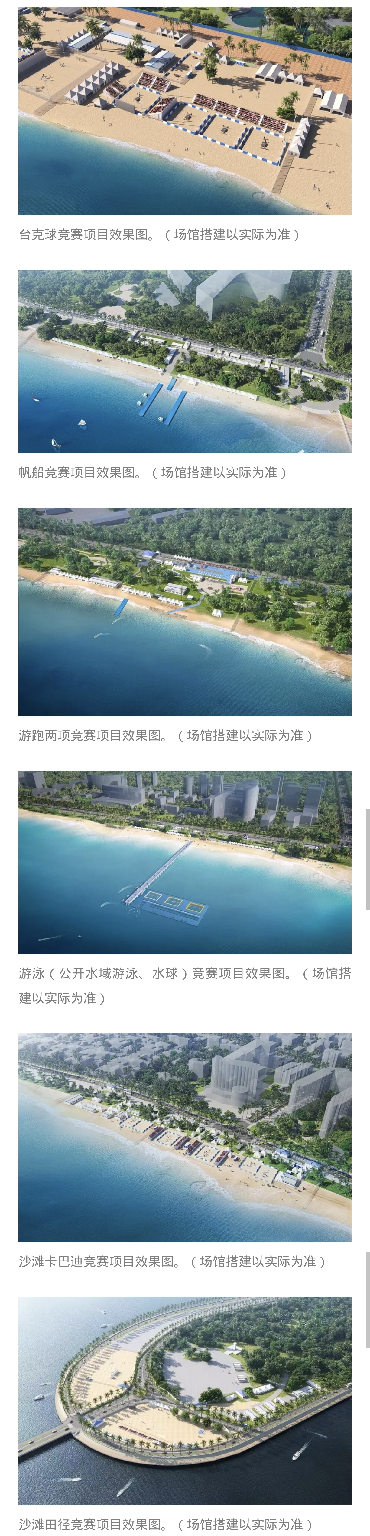 游泳(公开水域游泳、水球)竞赛项目选址在三亚湾海月广场举行;