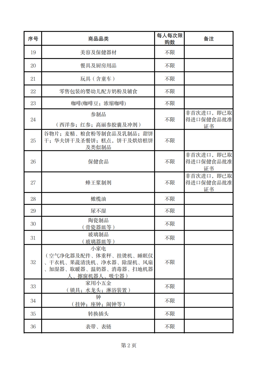 调整后离岛免税商品共47类,具体品类、购买数量、备注要求见附件,并按此执行。