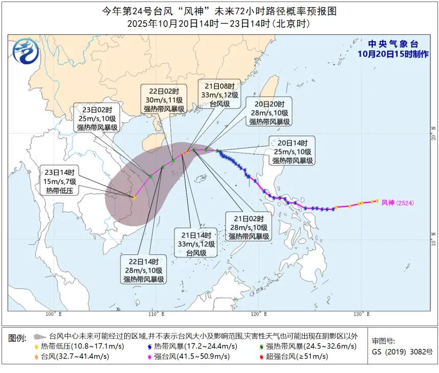 预计,“风神”将以25公里左右的时速向西偏北方向移动,强度逐渐加强,21日将以强热带风暴级或台风级(30~35米/秒,11~12级)从西沙群岛西北部海面经过,尔后趋向越南中部沿海。