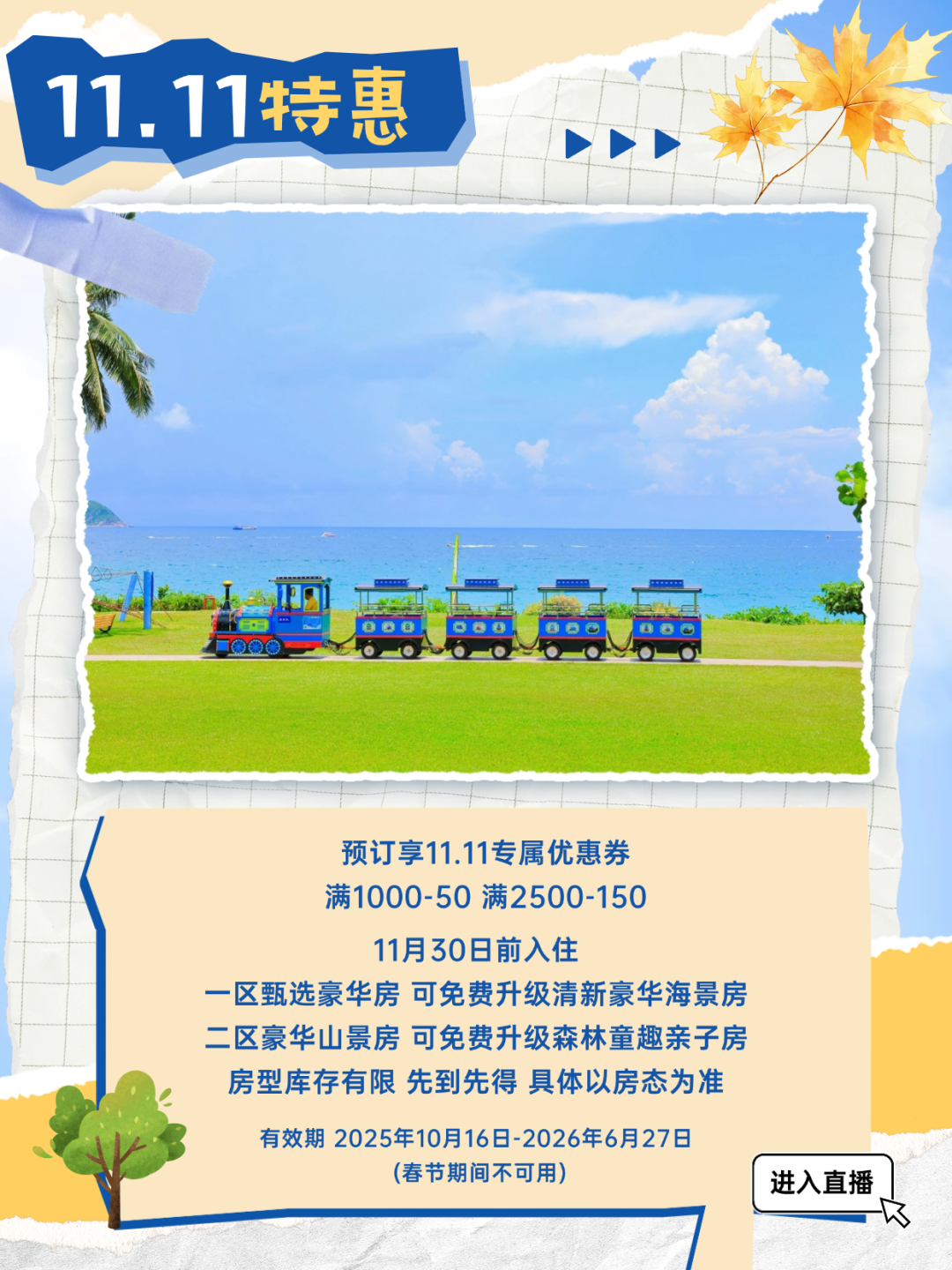 天域度假酒店双11大促丨爆款套餐1299元3天2晚起