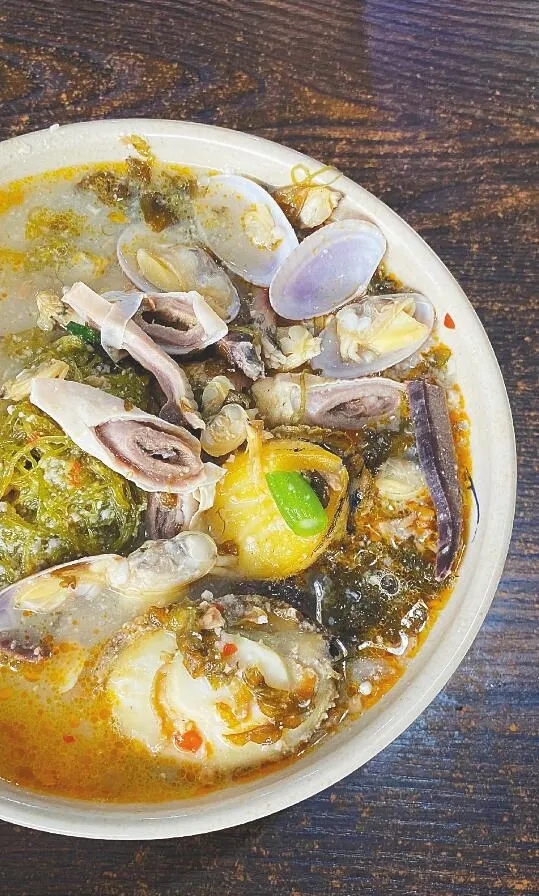 汤底浓中带清,独特的药材和胡椒香气存留口中,山鸡肉不油且鲜美,猪肚不腥且弹嫩,吃到末尾再加些木瓜和菇类,汤底会越发得浓郁,让人忍不住一口接一口。