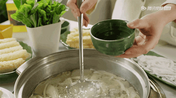 吃椰子鸡第一步是喝汤。动图截自视频《沸腾吧火锅》