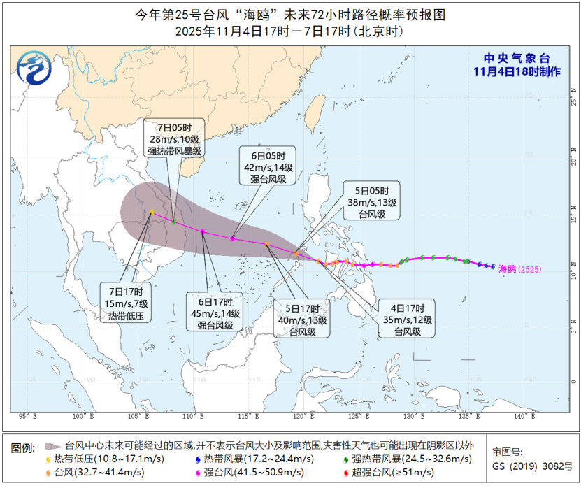 “海鸥”11月4日18时预报路径图