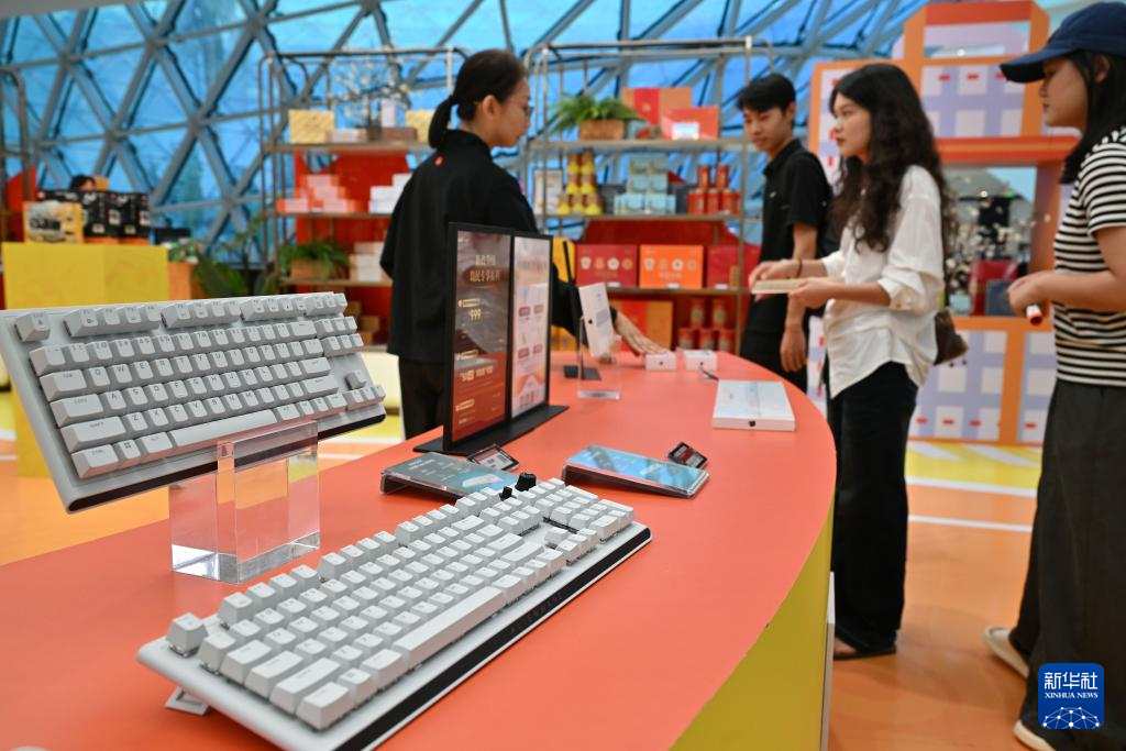 11月9日,顾客在三亚国际免税城选购数码配件。这是新增免税品类。新华社记者 郭程 摄