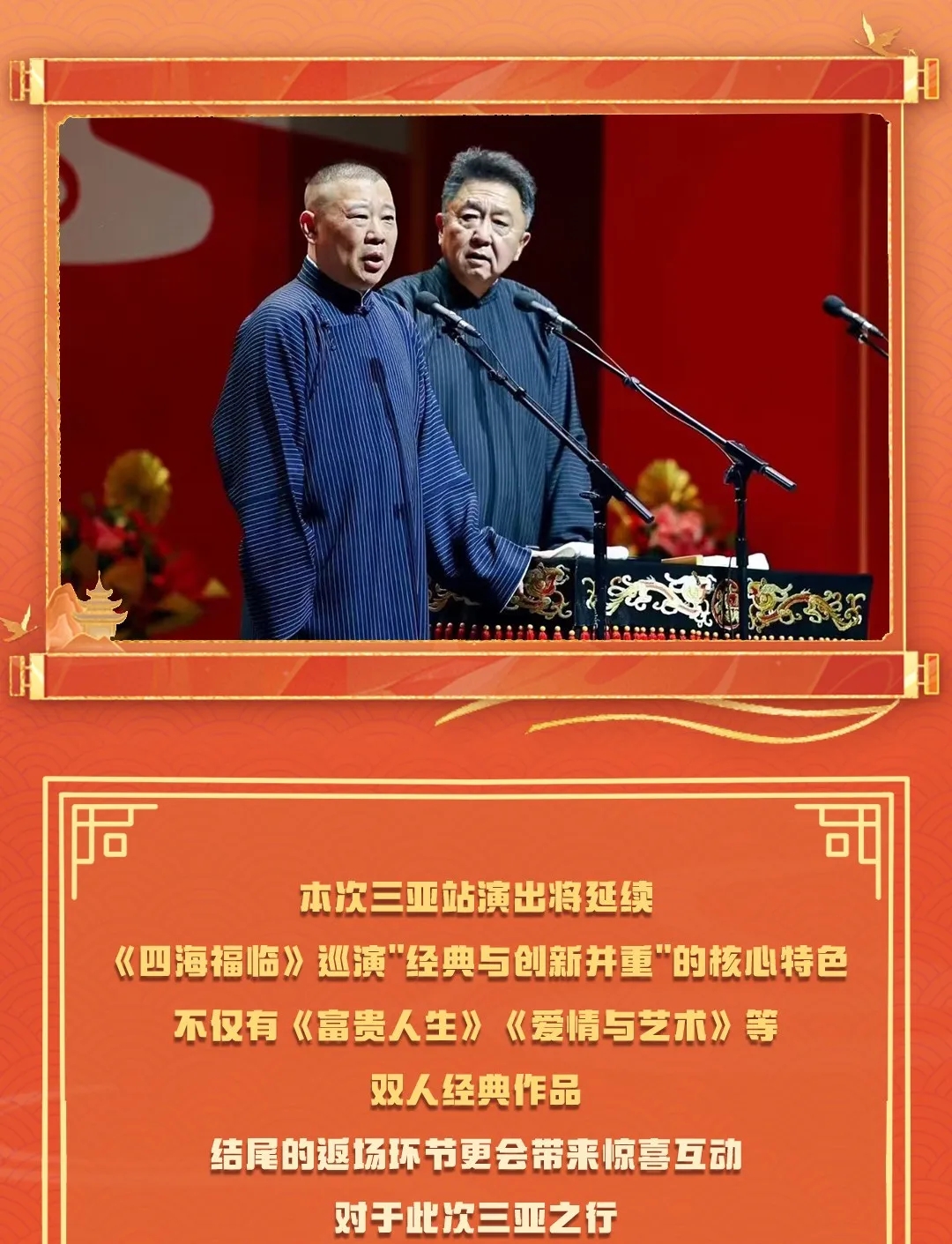 郭德纲·于谦相声专场要来三亚啦!时间→