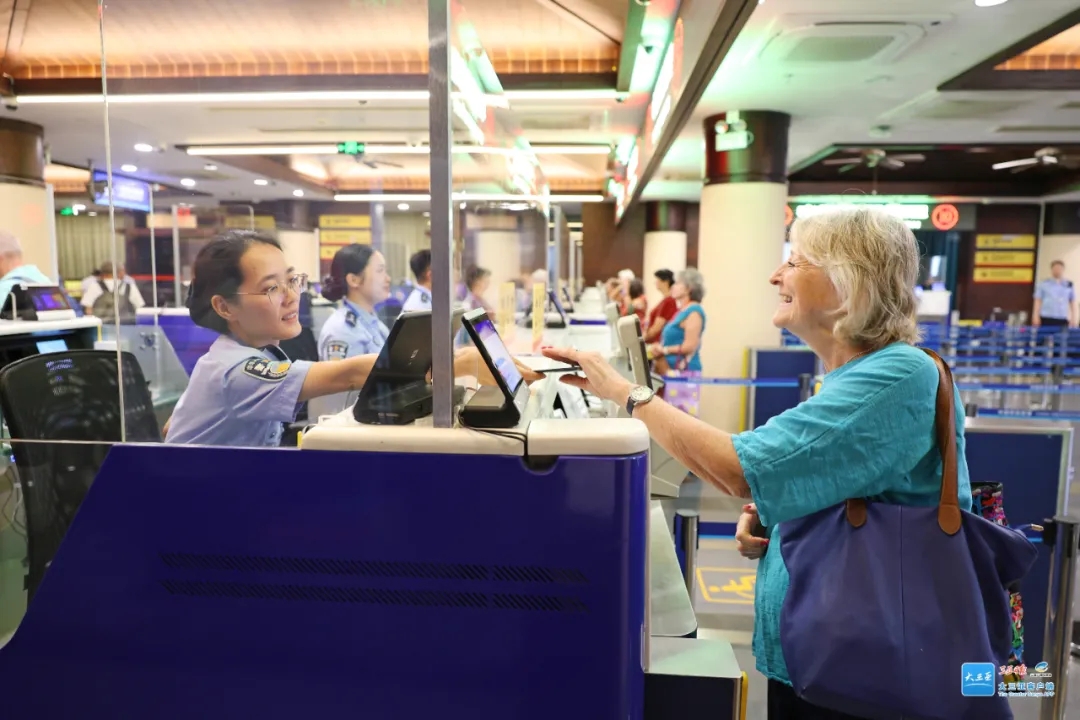 三亚边检站边防检查处处长成皓介绍,为提升通关效率,边检站创新推出“大型邮轮快速通关法”,加大智能化查验设施投入,研发全省邮轮管控系统。该系统集成指挥调度、勤务组织等功能,为邮轮母港、挂靠港、海上游等勤务及口岸管理提供全方位支撑。“我们还推行外国旅游团乘坐邮轮入境15天免签等便利政策,对乘坐邮轮入境的外国旅客可免予留存指纹生物信息,对乘坐同一航次邮轮入出境的旅客,可免盖入出境验讫章、免填外国人入境卡,大幅缩短了候检时间。”