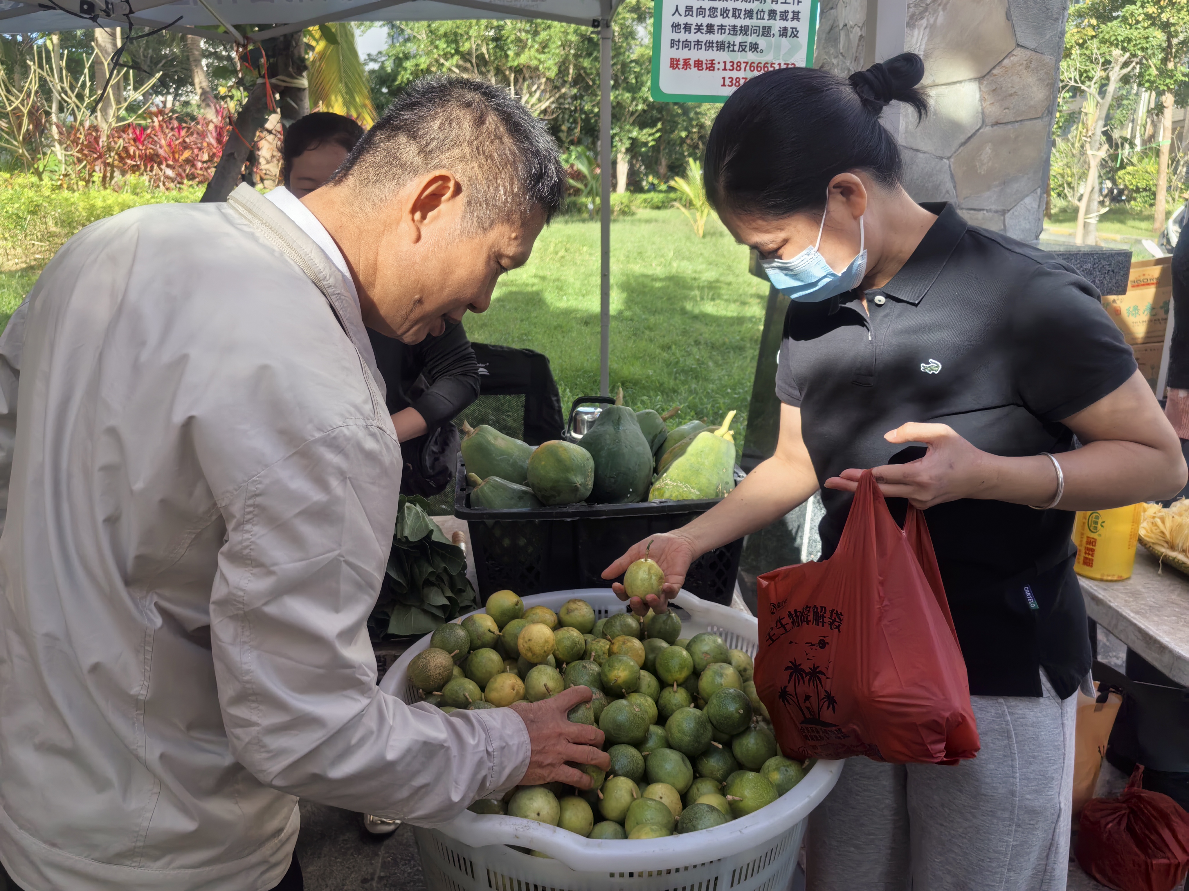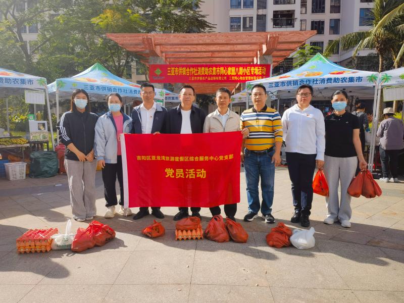 11月28日,同心家园八期小区中心休闲广场上,三亚市供销合作社与吉阳区农业农村局联合举办的消费助农集市正热闹开集。亚龙湾旅游度假区综合服务中心党支部组织党员干部职工在此开展“消费助农暖民心”主题党日活动,用实际行动为农户们的“钱袋子”添分量,为乡村振兴注入暖力量。