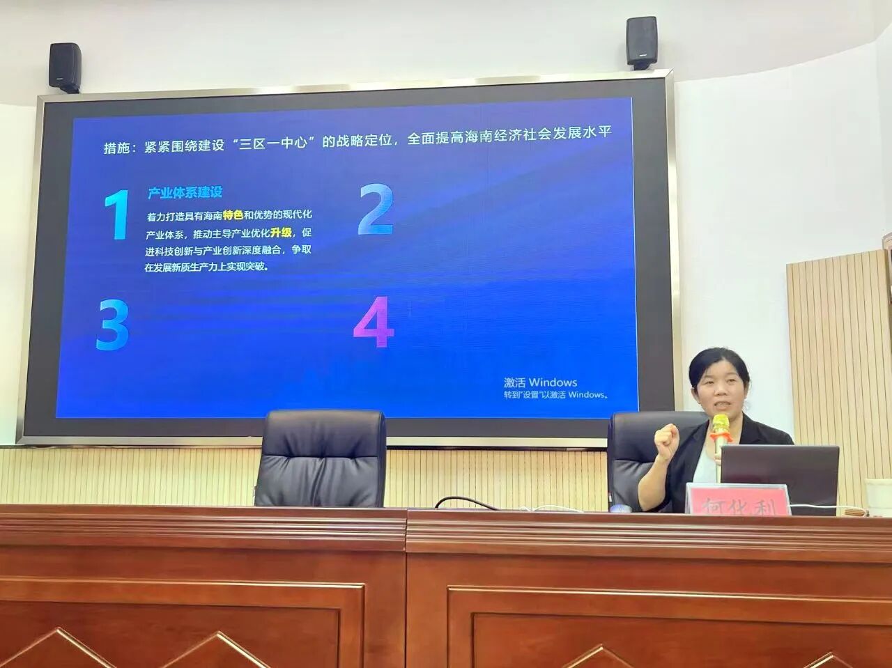 本次培训特别邀请海南热带海洋学院马克思主义学院教研室主任何化利博士主讲。作为海南省网络教育名师及省、市多级理论宣讲专家,何博士凭借深厚的学术积淀和丰富的宣讲经验,从自贸港建设的重大意义、核心政策红利、文旅产业发展新机遇等维度,进行了系统解读与深度阐释。授课内容既有理论高度,又紧密结合文旅产业实践,为参会人员搭建了清晰的政策认知框架。