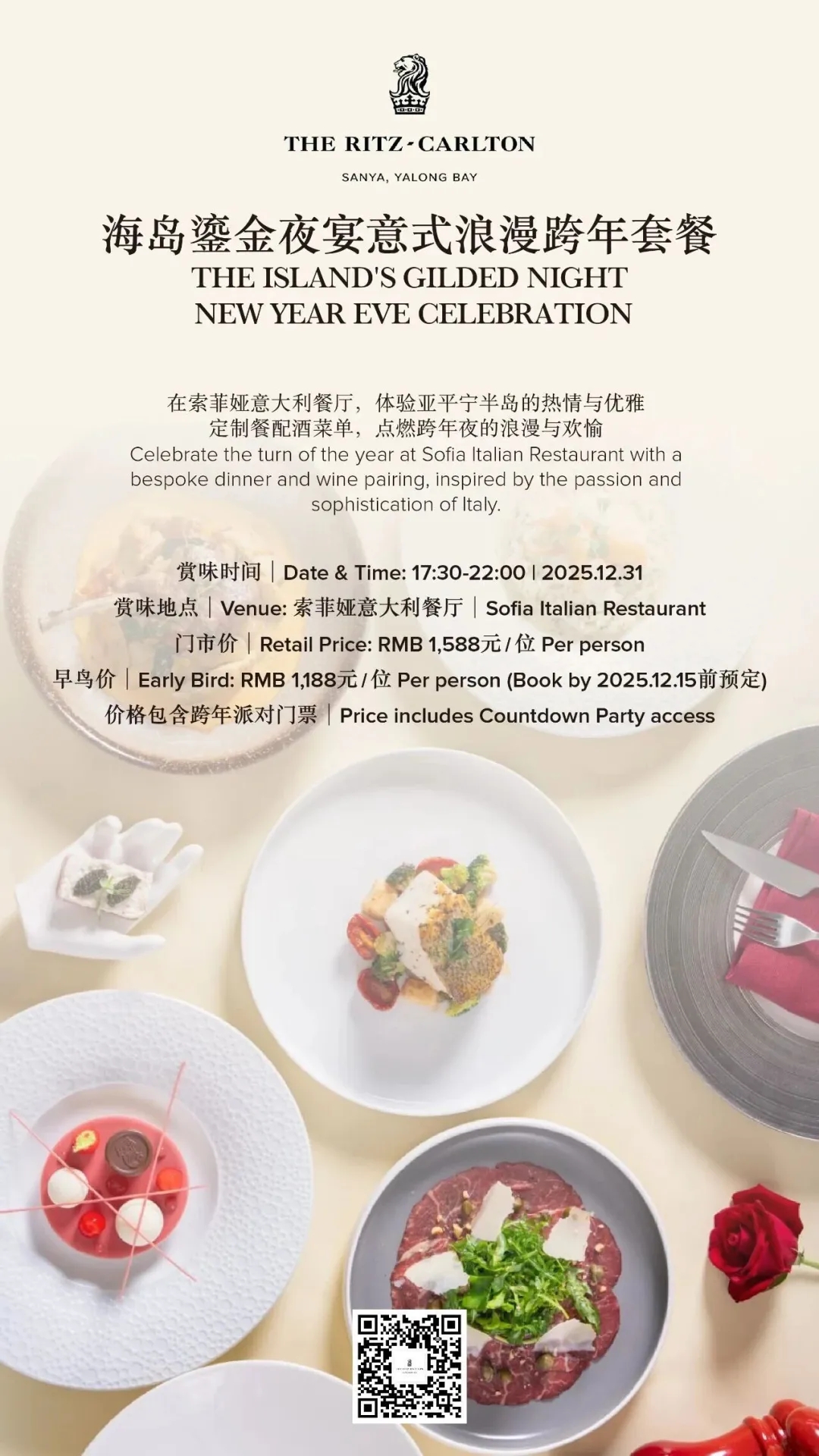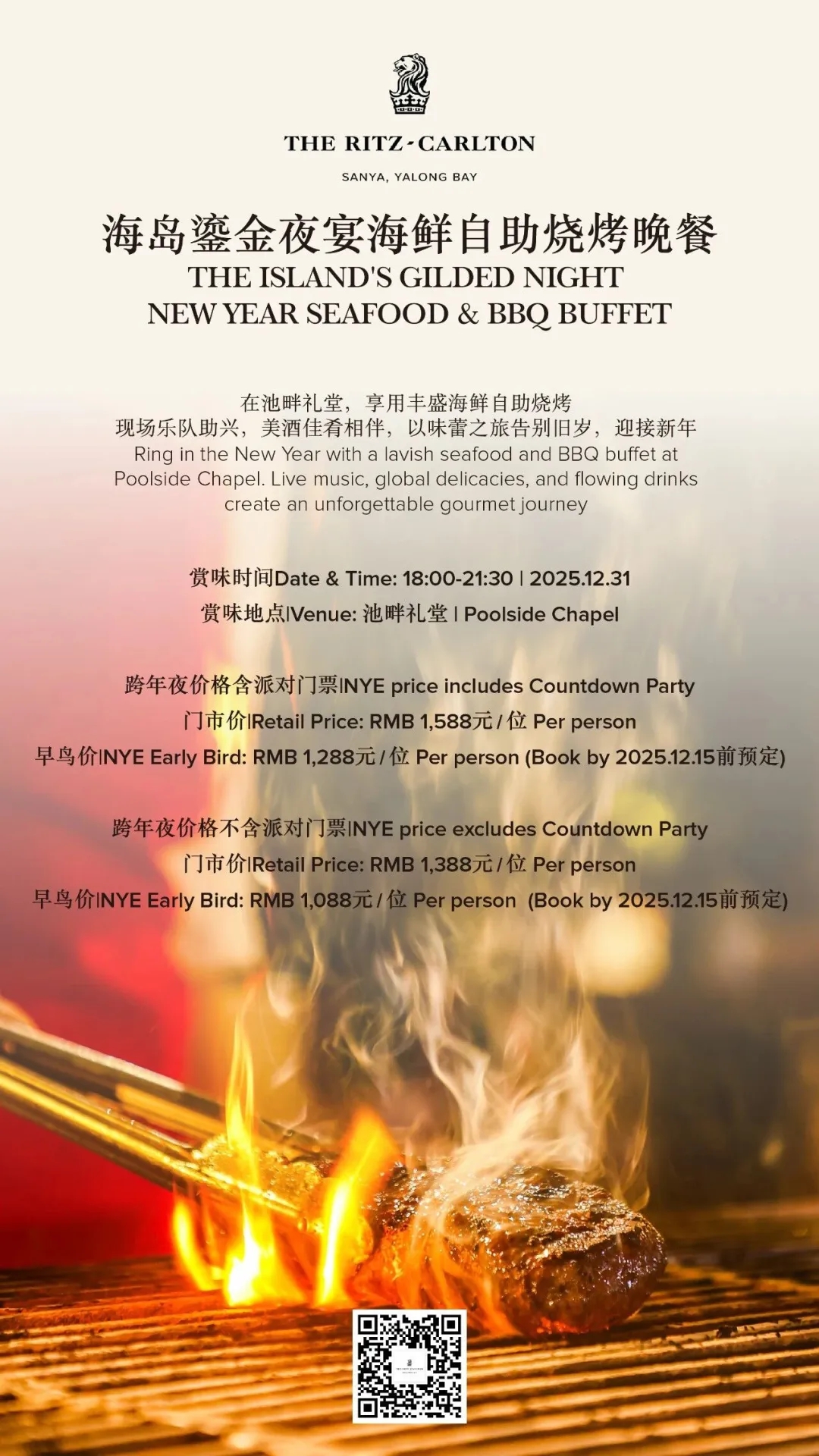 以耀眼的方式告别旧岁,迎接新年第一缕光芒。在海边餐厅或索菲娅意大利餐厅的专属跨年套餐中举杯相贺,让精选佳肴与佐餐美酒升华相聚时光。亦可投入海鲜自助烧烤盛宴,在动感乐队演奏中开启味蕾狂欢。晚宴后,盛大的璀璨跨年派对已然就绪。在电音DJ、火热表演与漫天流光中共同倒数,让音乐与欢呼声点燃整片海岸。