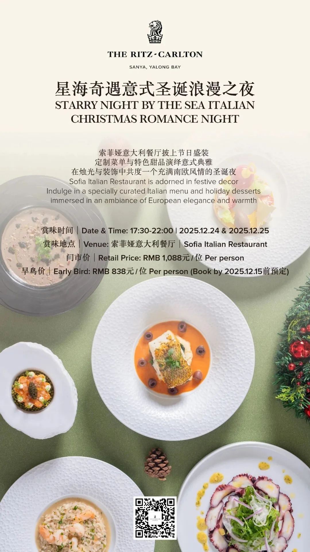 让节日氛围在热带海上行宫中弥漫。于中央草坪的星空下,参与一场充满欢笑的圣诞主题自助烧烤晚宴,与巡游的圣诞老人惊喜相遇,在明快的乐队演奏中吹吹海风。或选择在海边餐厅的私密烛光中,享用浪漫星夜套餐。钟爱欧陆风情,则不可错过索菲娅意大利餐厅盛装呈现的意式浪漫之夜,在典雅装饰与精选美味中,感受纯正节日暖意。