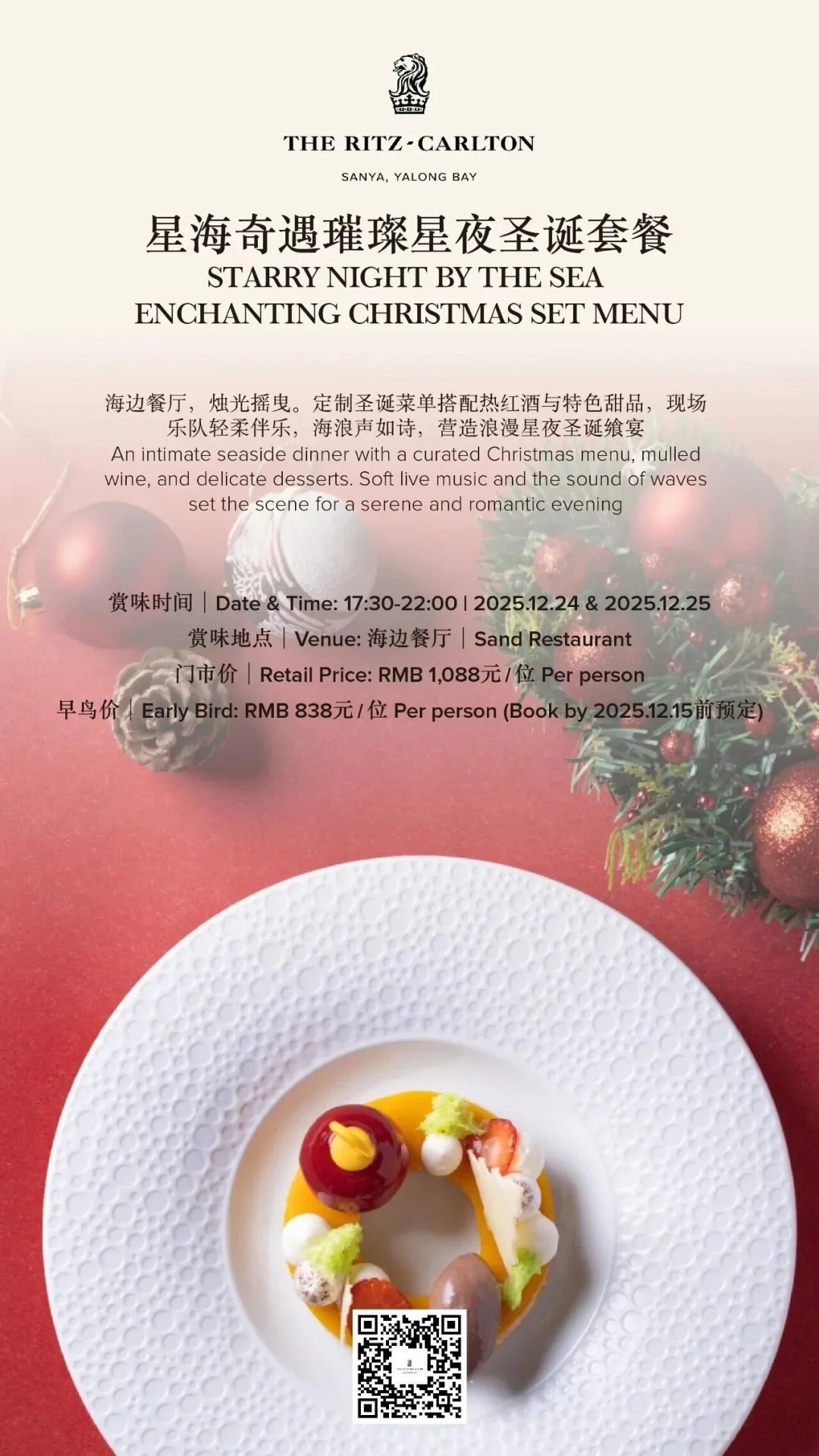 暖冬海岛,让蔚蓝海岛与璀璨星光为你加冕。金茂三亚亚龙湾丽思卡尔顿酒店以一系列精心雕琢的节日欢聚,点亮你的年末奇幻旅程。