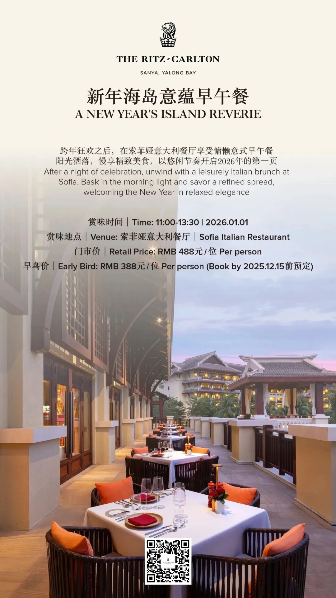 在新年的第一缕阳光下悠然苏醒。前往索菲娅意大利餐厅,享用一场慵懒惬意的意式早午餐,让阳光与精致美食,为你写下2026年从容而优雅的第一页。