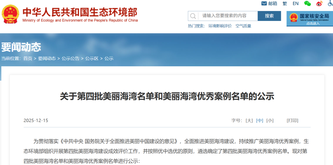 生态环境部公示第四批美丽海湾名单和美丽海湾优秀案例名单