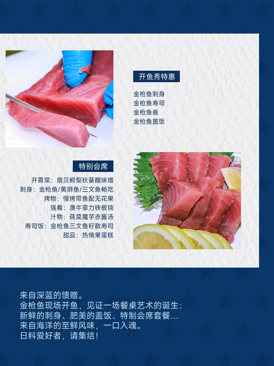 新鲜的刺身、肥美的盖饭、特制会席套餐……来自海洋的至鲜风味,一口入魂。