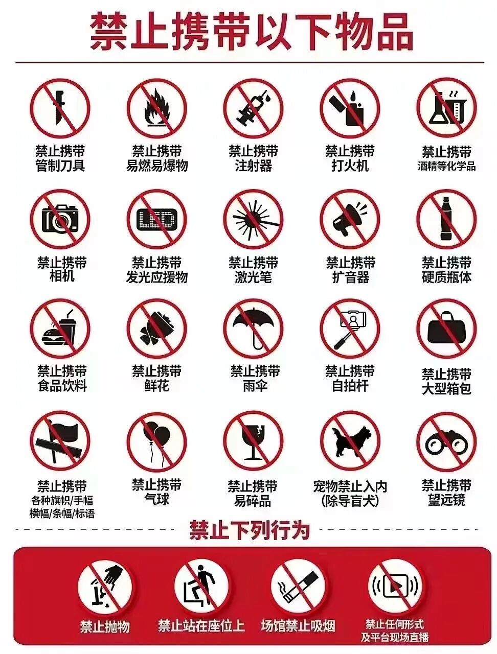 严禁携带下列物品进入场馆: