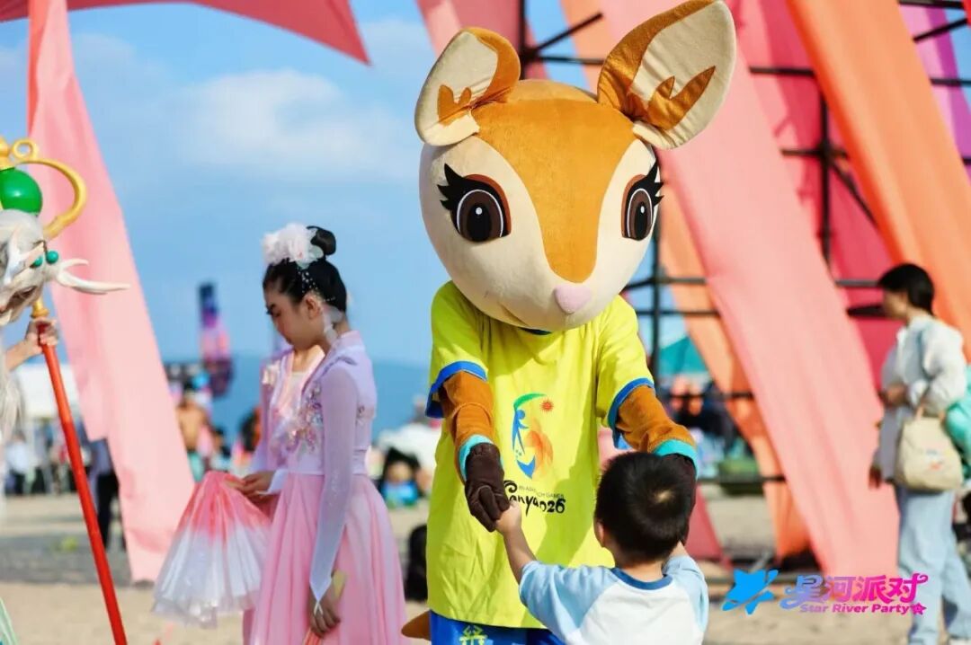 1月2日,三亚亚龙湾海滨热闹非凡,一场汇聚音乐、运动与市集的“星河派对”在此举办,吸引逾万名市民游客参与,现场气氛热烈。第六届亚洲沙滩运动会(以下简称“三亚亚沙会”)吉祥物“亚亚”穿梭于海浪市集、变装小站与互动舞台之间,与游客亲切互动、合影,为元旦假期增添了一抹灵动与欢乐。