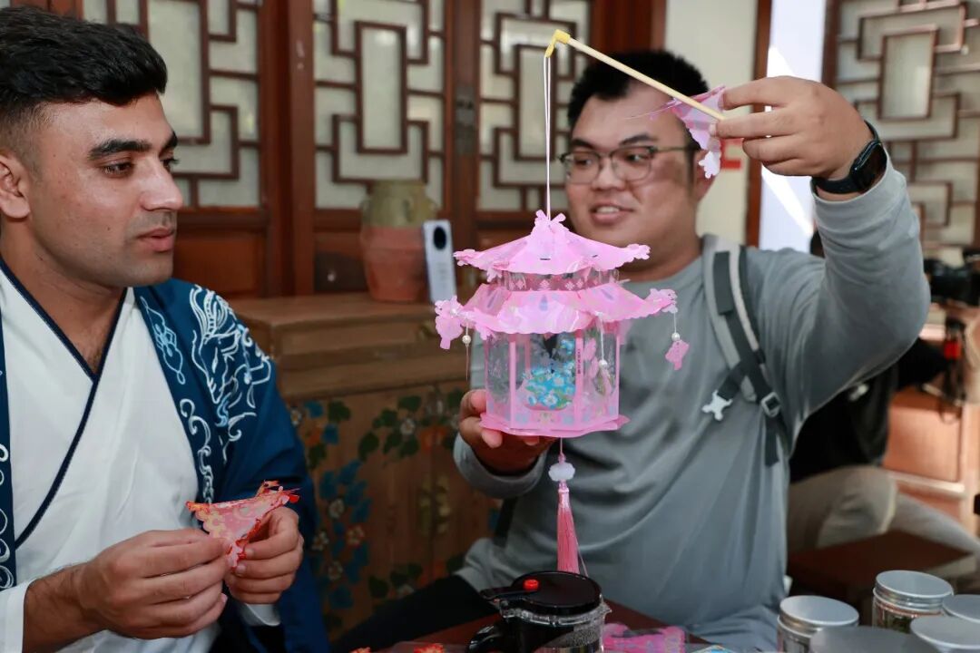 兰花谷内,绿意盎然,花香四溢。留学生们在专业老师的指导下,亲手体验传统花灯的制作过程。从选材、剪裁到粘贴、装饰,每一步都凝聚着匠心与智慧。他们专注地学习,不时交流心得,脸上洋溢着兴奋与喜悦。花灯制作不仅是一项手工艺活动,更是一次深入了解中国传统文化、感受节日氛围的珍贵体验。