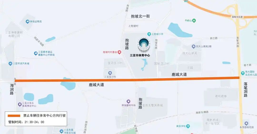 (一)管制路段:体育中心北街、抱坡东路