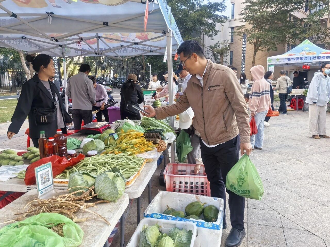 这场由三亚市供销合作社与吉阳区农业农村局联合举办的公益集市,是助力农户、尤其是脱贫户拓宽销路的暖心之举。亚龙湾旅游度假区综合服务中心党支部以“消费助农暖民心”主题党日活动为契机,组织党员干部职工们奔赴集市,用“以购代捐”“以买代帮”的实际行动,为乡村振兴注入一股强劲的暖力量。