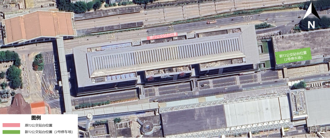 原T2三亚机场公交站台将迁至2号停车场,具体位置如下图所示。