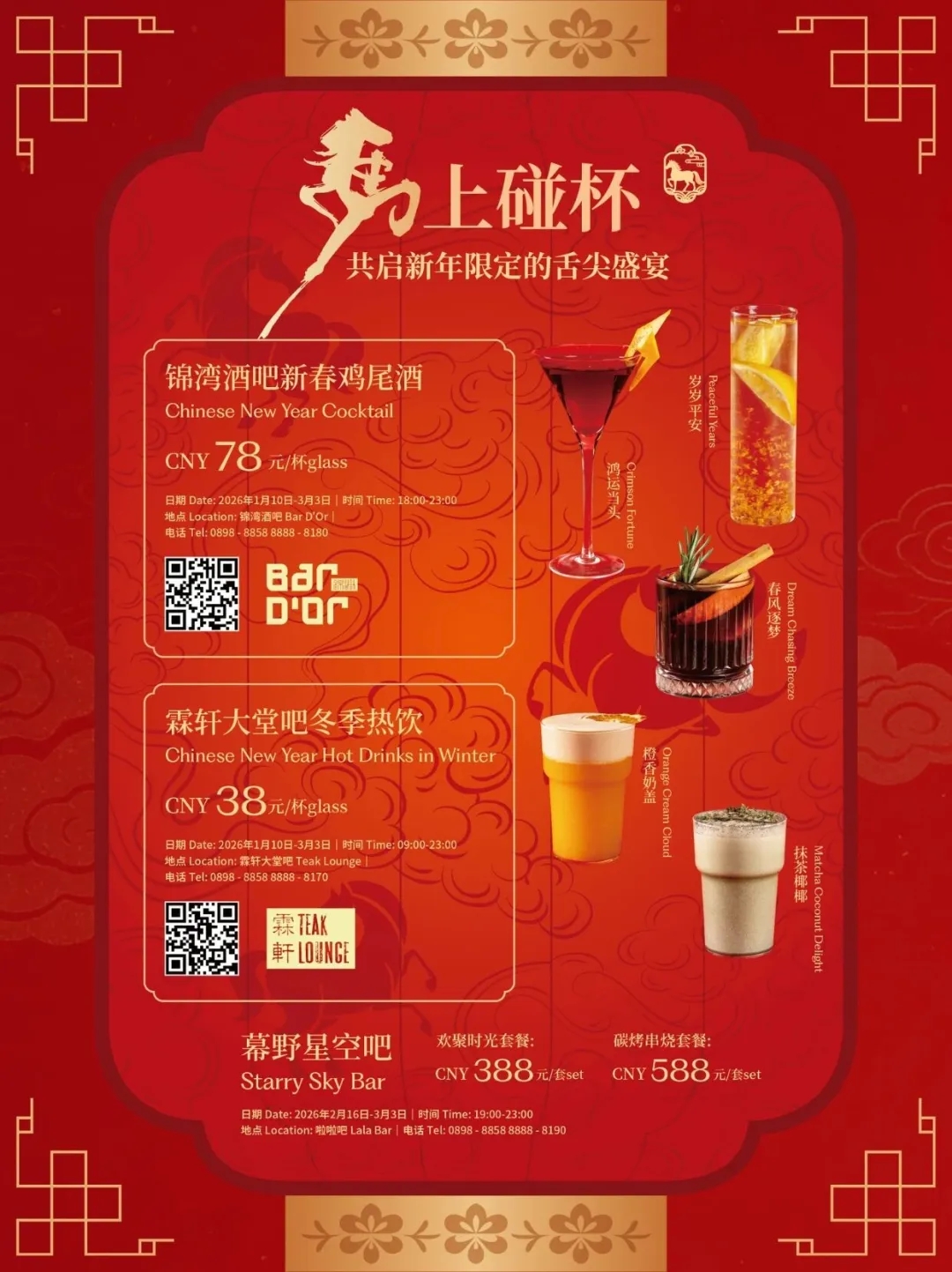 锦湾酒吧推出新春限定鸡尾酒,“马”上碰杯!欢度佳期