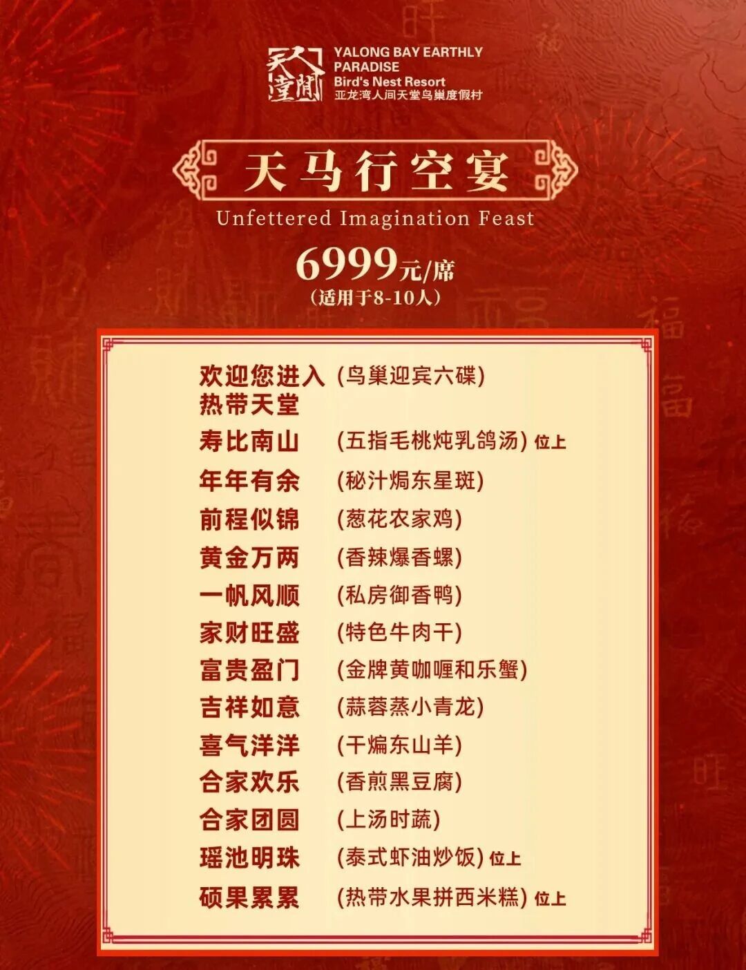 6999元/席 · 天马行空宴(8-10人餐)