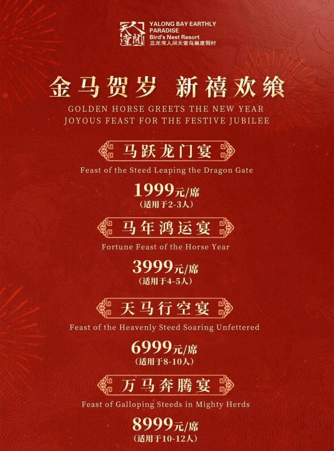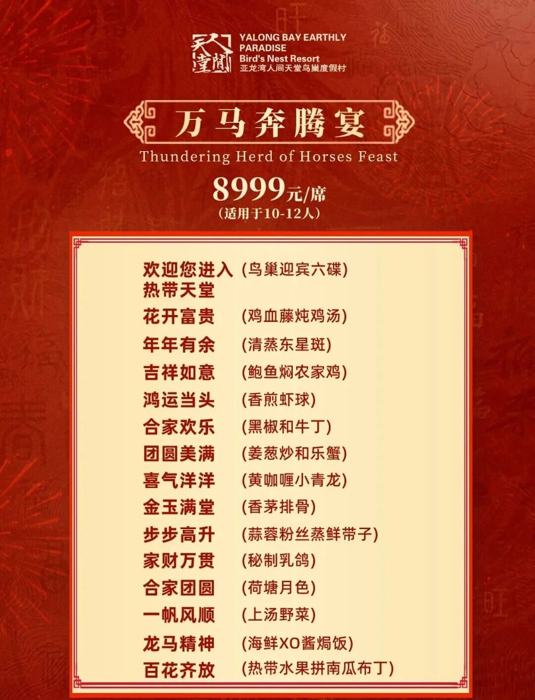 8999元/席 · 万马奔腾宴(10-12人餐)