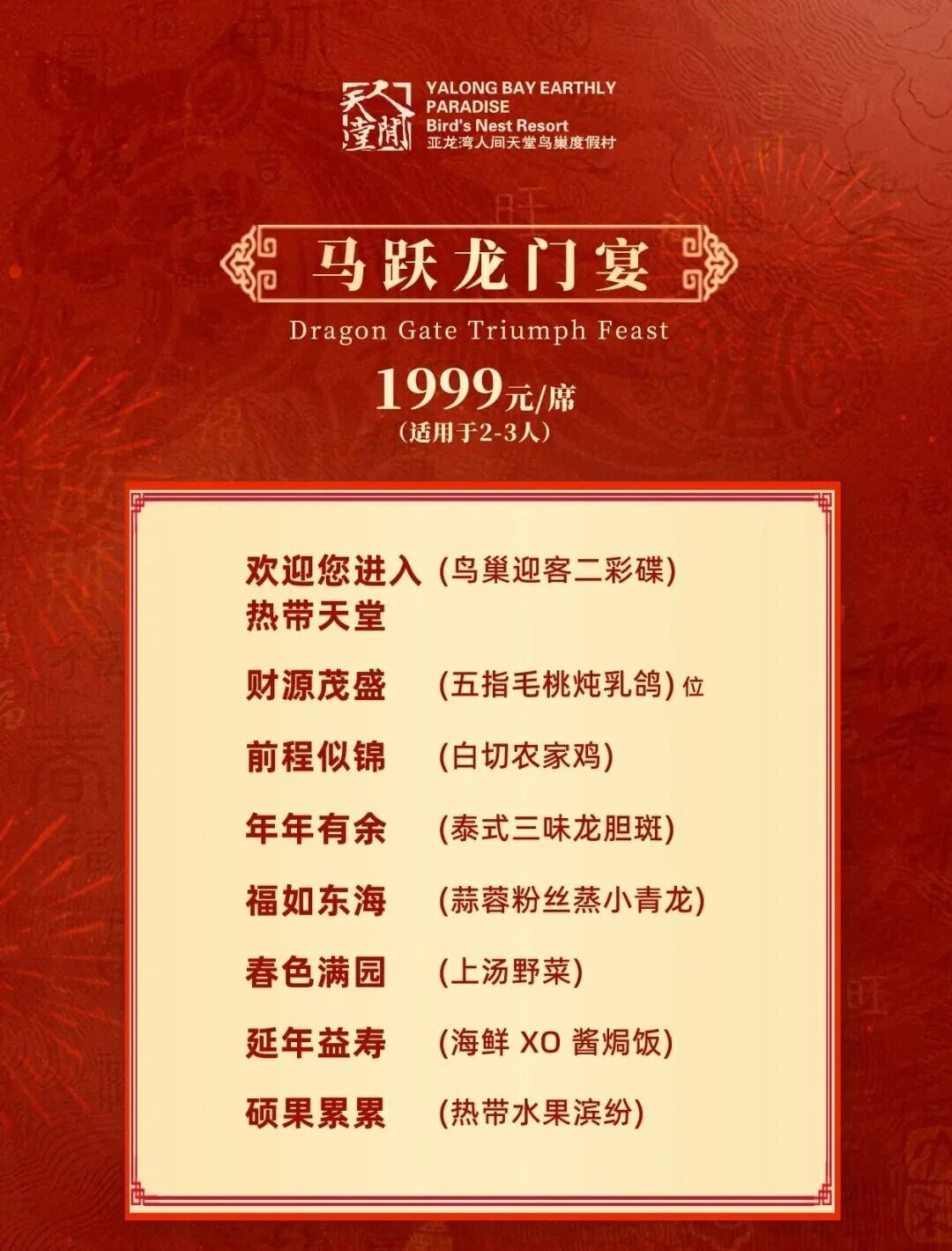1999元/席 · 马跃龙门宴(2-3人餐)