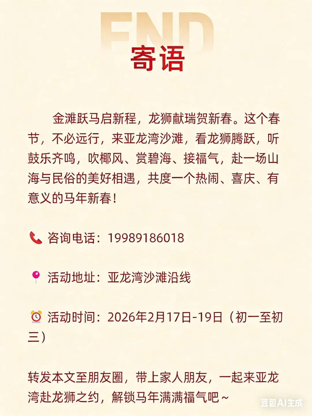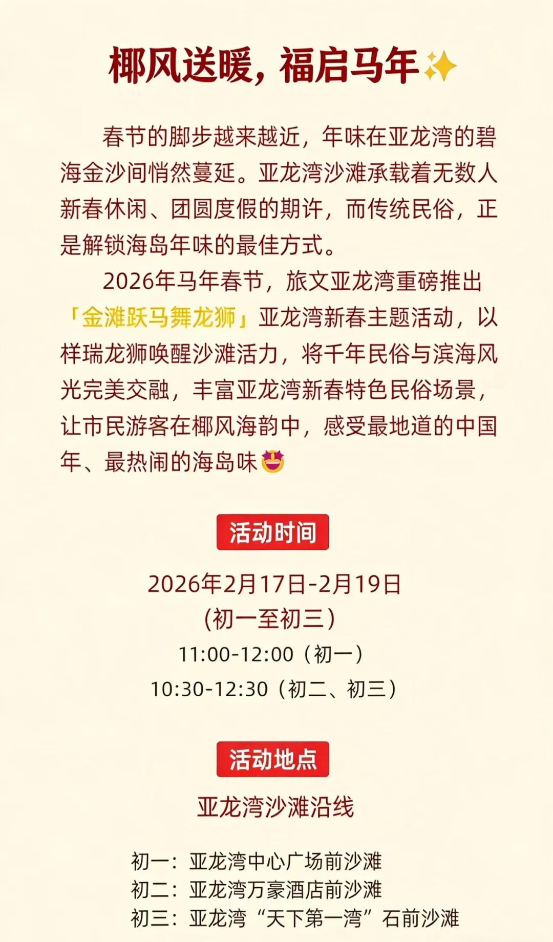 金滩跃马舞龙狮!亚龙湾沙滩马年新春民俗盛宴邀您共庆!