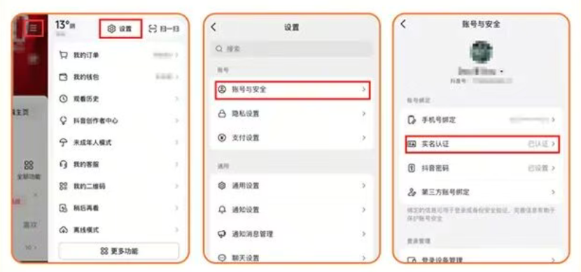 抖音APP-右下角“我” 三道杠-设置