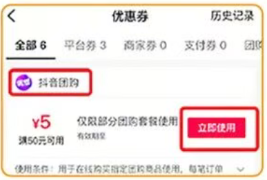 点击“团购优惠卷”进行使用