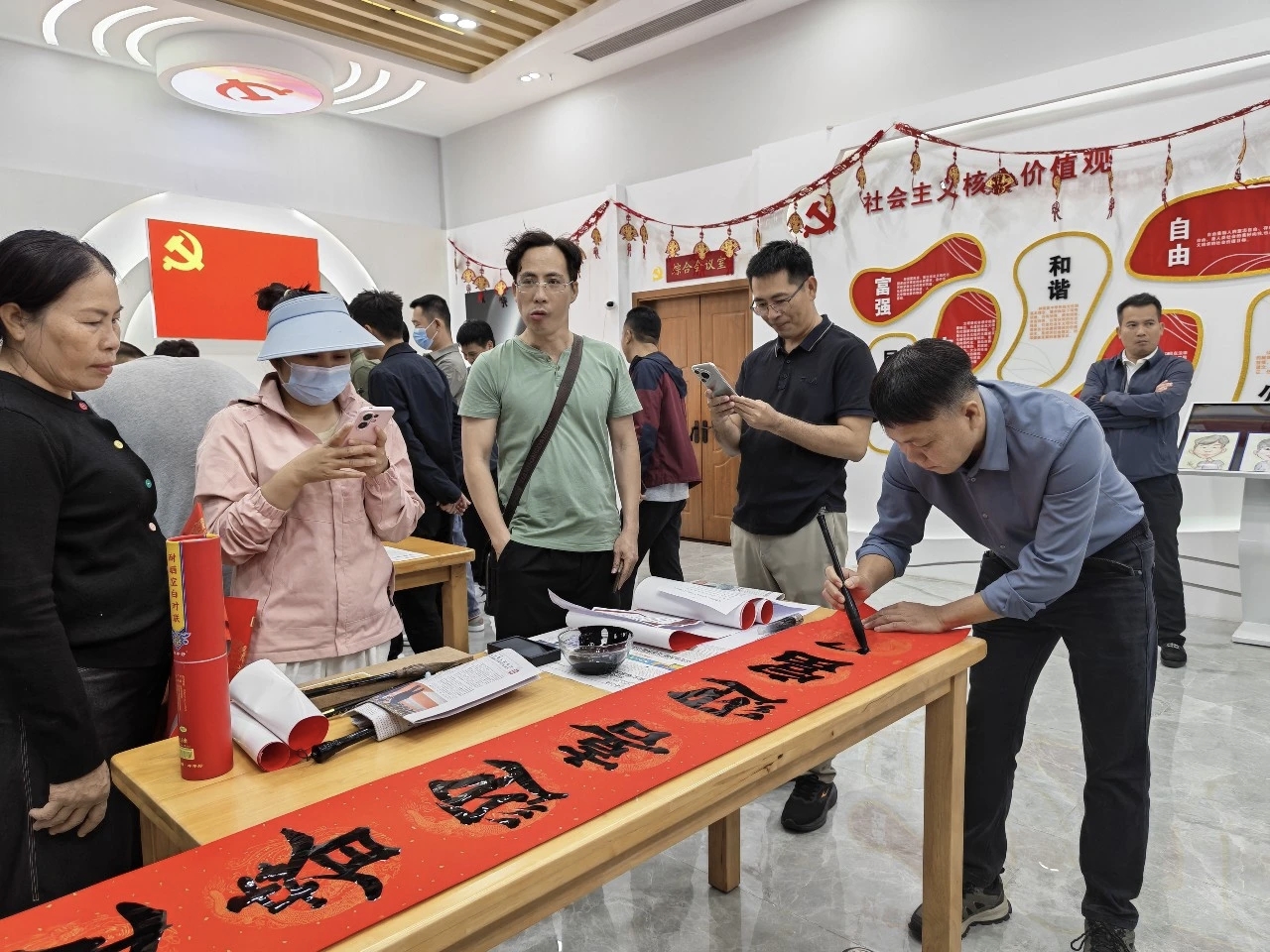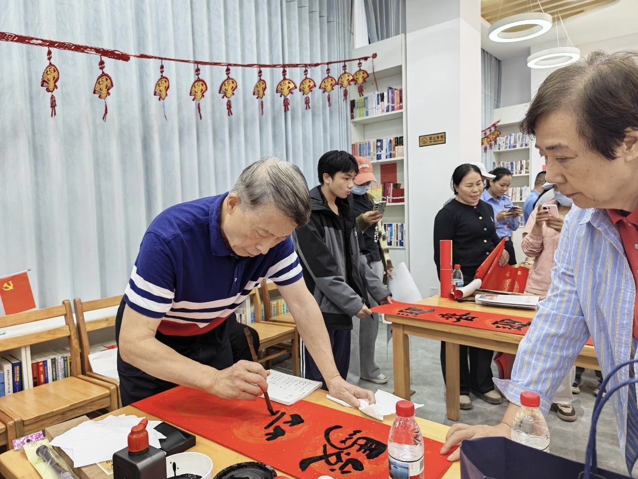 喜庆的红纸、温暖的墨香,映照着群众喜笑颜开的面庞,整个党群服务中心洋溢着浓浓的年味与温情。大家以墨为媒、以艺会友,在创作中交流心得、在切磋中增进情谊,让传统文化魅力与湾区同心力量相融共生。