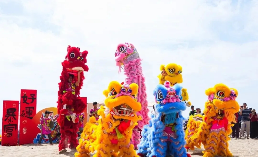 活动安排为期3天,分别在亚龙湾中心广场前沙滩、万豪酒店前沙滩、"天下第一湾"石前沙滩定点表演,以"动态巡游+静态仪式"打造"山海共舞、民俗共生"独特场景,亮点突出。11时18分的点睛仪式成为焦点,朱砂点睛、鼓乐齐鸣,寓意"启祥纳福、马年顺遂",仪式后龙狮与游客近距离合影互动,让大家沉浸式感受民俗魅力。市民游客纷纷点赞:"既能看龙狮、又能赏海景,年味和雅韵都有了!"这一细节将传统文化融入服务场景,现场氛围热烈,喝彩不断。