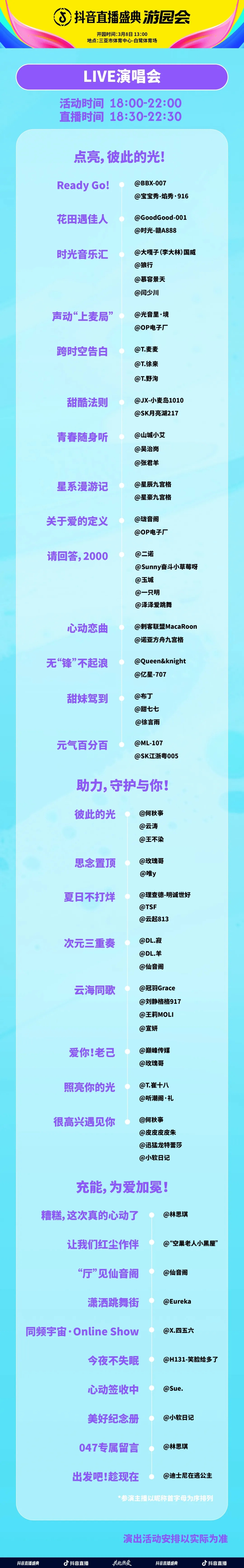 本次Live演唱会也将于「抖音直播」官方账号全程直播,更多现场内容如下