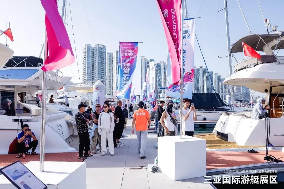 第六届中国国际消费品博览会三亚国际游艇分展区以“中国窗口,艇见未来”为核心理念,齐聚全球知名企业家、采购商、专业观众以及游客,为消博会“全球消费精品”矩阵增添生动注脚,共同助力海南国际旅游消费中心建设。