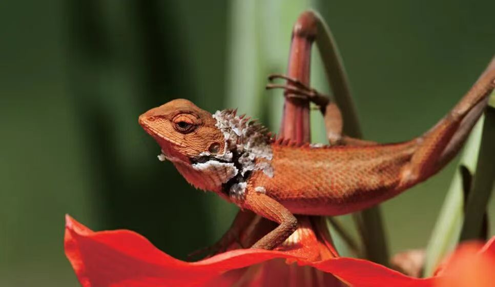 兰花谷里树上趴,鳞片张开晒太阳,慵懒的享受着日光浴。
