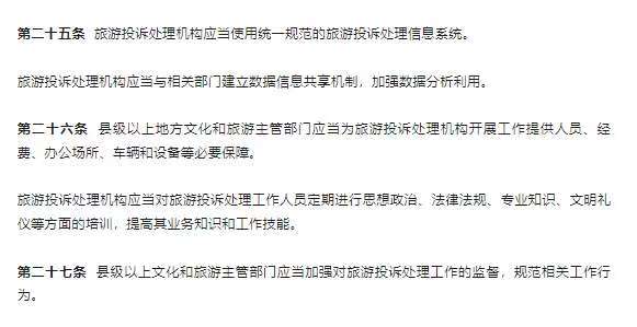 完善的管理制度、部门协同和保障机制是旅游投诉处理的基础。《办法》进一步优化行政部门处理旅游投诉的流程和方式,明确部门衔接流程,提升投诉的处理效率。
