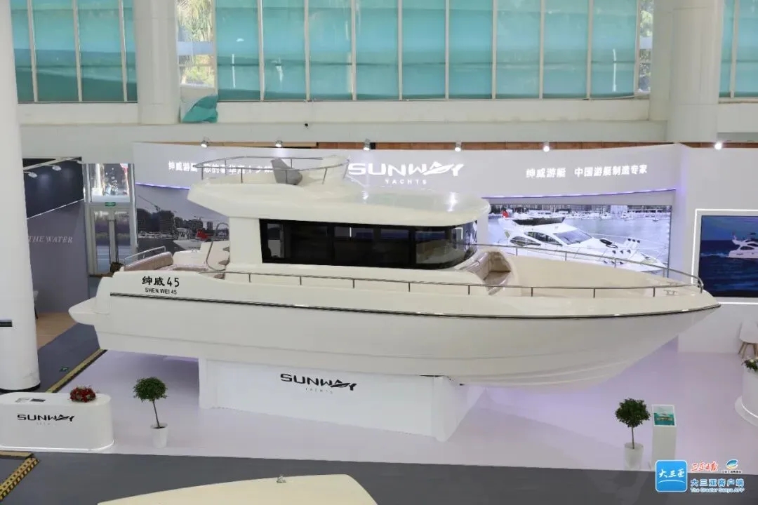 国产绅威45游艇亮相第五届消博会三亚游艇展区。(资料图)