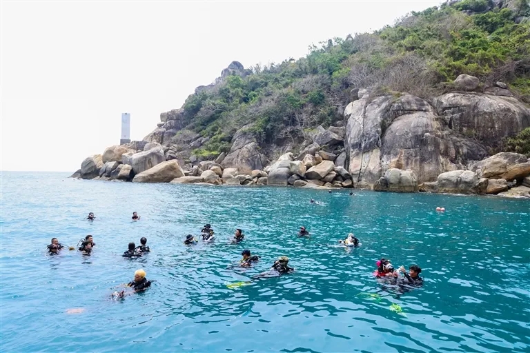 潜水爱好者在百福湾惬意体验“玻璃海”乐趣。